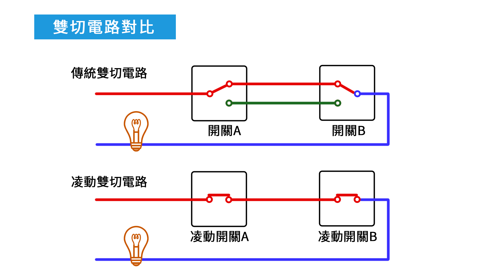 下面我們就來看看傳統接線以及凌動開關的接線法有什麼不同