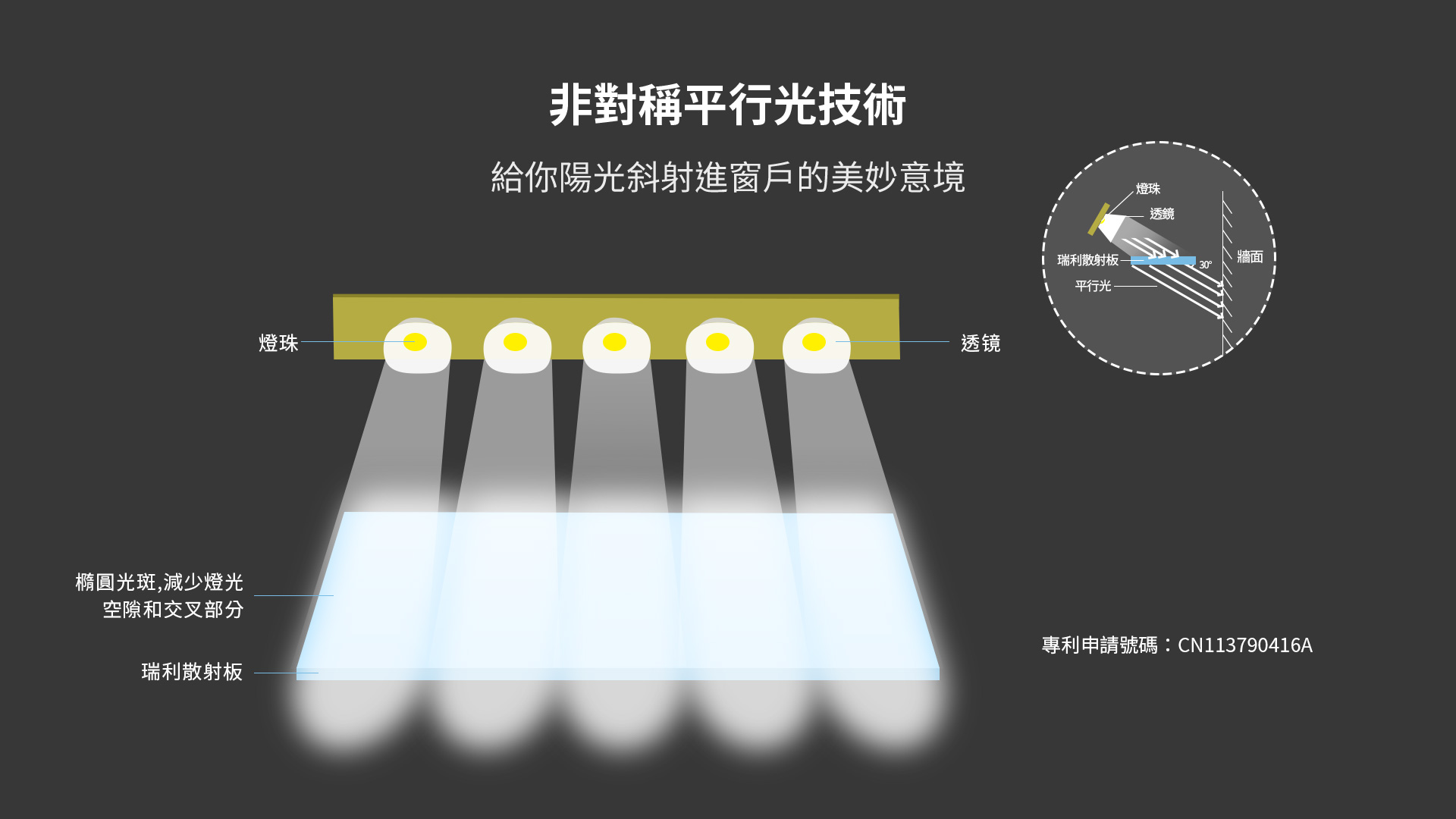 模擬天空的概念,最早是意大利的Paolo教授在2000年左右提出,目前日本三菱、松下、荷蘭飛利浦、韓國三星都在做類似產品,技術原理類似,但是也都是試驗階段,目前也沒有有效的同級產品出現。