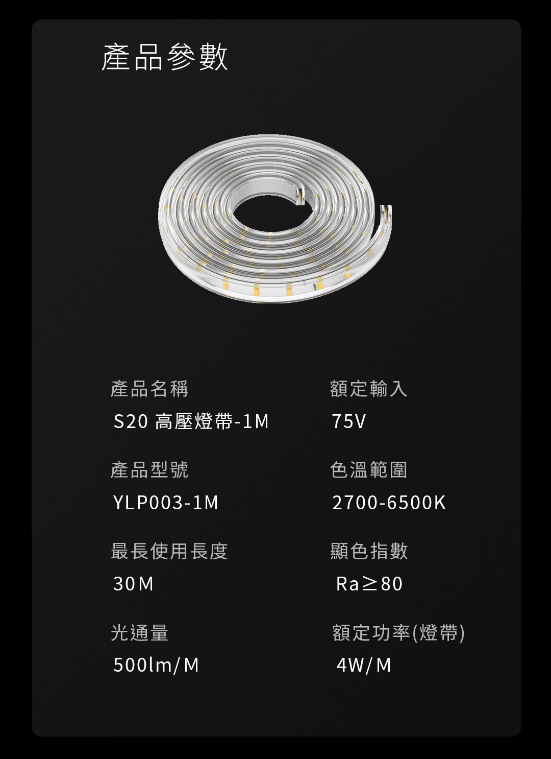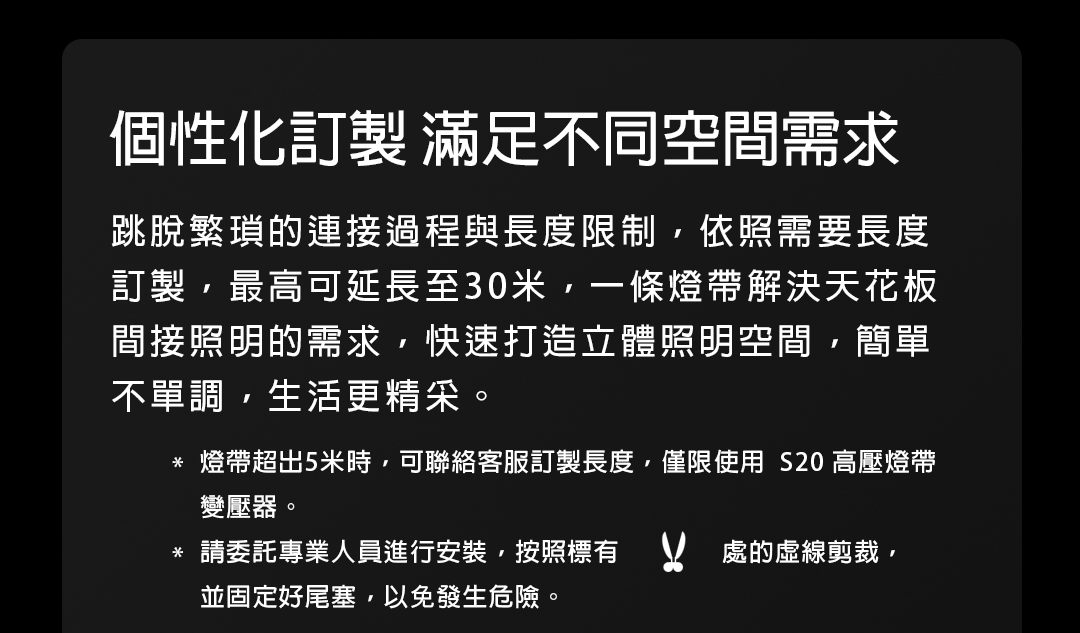 本產品需搭配 S20 高壓燈帶變壓器 使用